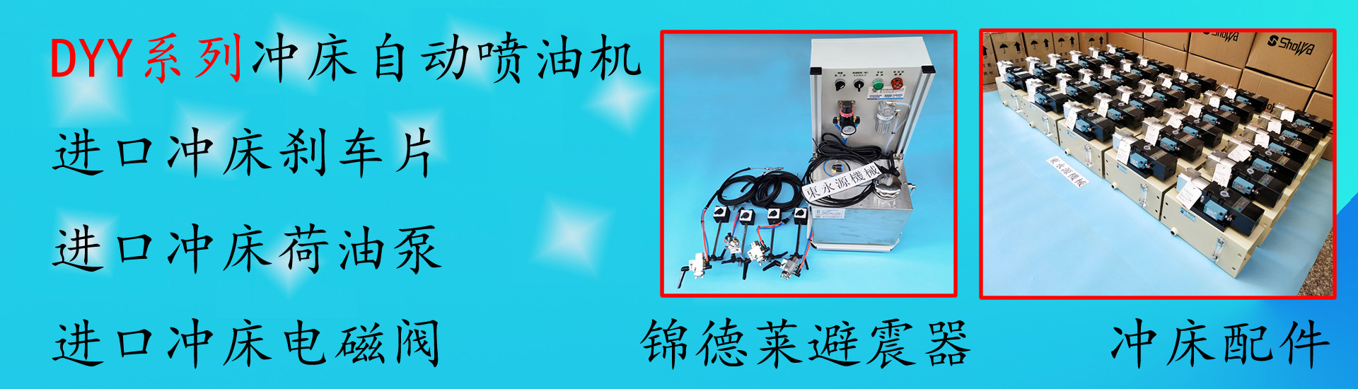 公司主要從事減震器研發(fā)、銷售、工程安裝。經營主要產品有JEDLA氣壓式避震器、錦德萊氣壓式防震腳、液壓裁斷機減震墊、油壓沖床減震器、三坐標防震墊、三次元減震器、測量儀器隔震墊、樓上沖床減震墊、紡織機減震腳、繡花機避震器、注塑機減震腳墊、機械設備防振墊、吸塑機減震墊、三坐標減震器、沖壓自動涂油機、沖床自動噴油機、沖壓自動噴油裝置等工業機械防震產品。產品熱銷國內市場。